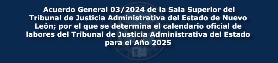 | Acuerdo general 03/2024 de la Sala Superior del Tribunal de Justicia Administrativa del Estado de Nuevo León; por el que se determina el calendario oficial de labores del Tribunal de Justicia Administrativa |